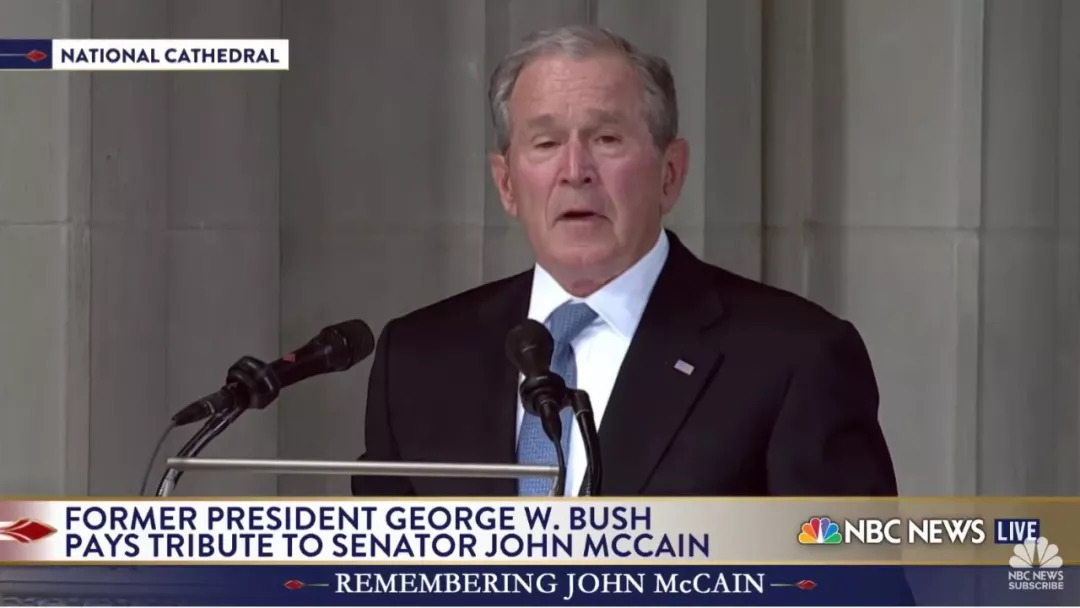 前總統(tǒng)喬治·W·布什致辭。 (圖片來自NBC News截屏)
